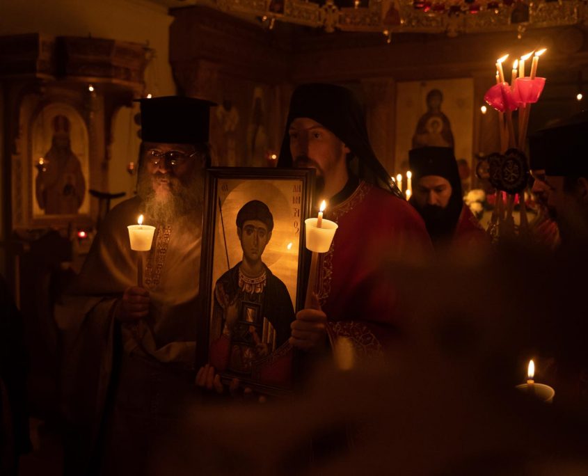 On Monday October 25/November 7, His Eminence celebrated the vigil service in honor of the Holy and Glorious Great Martyr Demetrius, together with clergy of the Metropolis, monastics, and faithful. The compassionate service was made brilliant by the grace of the prizewinner, according to the monastic tradition. Many faithful came from different parts of the country to honor the saint, and to support our Archpastor, His Eminence Demetrius.